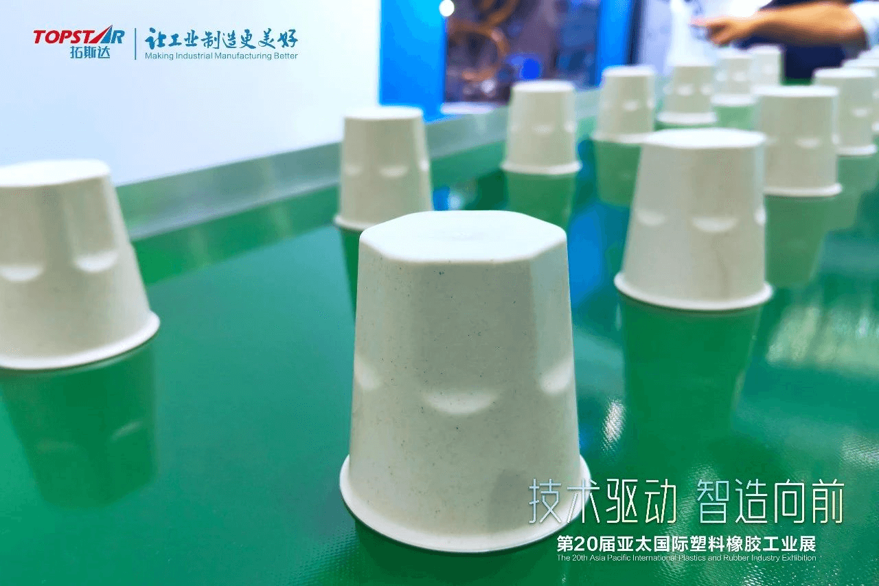 在環(huán)保新材料注塑成型工藝方面,拓斯達(dá)注塑機(jī)表現(xiàn)同樣亮眼。其中,由TS220注塑機(jī)生產(chǎn)的水杯產(chǎn)品采用可降解的稻殼纖維生物質(zhì)原材料,這一解決方案需應(yīng)對稻殼纖維原料的特殊性,如粘性、流動(dòng)性等挑戰(zhàn),同時(shí)要求高精度和穩(wěn)定性,以確保產(chǎn)品尺寸一致性和外觀品質(zhì)。
