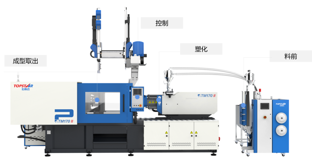 此外,拓斯達(dá)TS注塑機(jī)搭配自研控制系統(tǒng),實現(xiàn)主機(jī)、輔機(jī)、自動化配套通訊,對整個注塑工序?qū)崿F(xiàn)一體化;蘭海濤表示,采用拓斯達(dá)的自研系統(tǒng)集成通訊成為“工序一體機(jī)”,可實現(xiàn)了機(jī)械手和開模工序的同步聯(lián)動,通過提前到位和精度補償功能,縮短了成型周期,提高了生產(chǎn)效率。機(jī)械手能夠更快速且準(zhǔn)確地抓取產(chǎn)品,減少了異常報警和設(shè)備維修次數(shù),進(jìn)一步提高了生產(chǎn)效率。