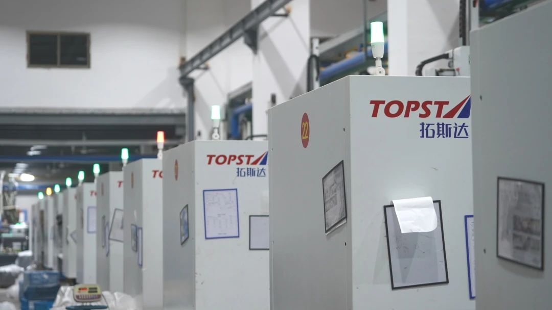 彭先生提出:“現(xiàn)在的車間滿足不了產(chǎn)能,所以我們要增加設(shè)備?!痹谘b備智能化和注塑自動化方面,拓斯達工程師通過對金華涵燁的產(chǎn)品、模具、工藝等多個方面的梳理,為車間選配TS/G系列注塑工序機,該機型搭載拓斯達自研的控制系統(tǒng),已與模溫機、機械手等輔機設(shè)備信號互聯(lián),不僅能夠節(jié)省調(diào)試時間,還能對人工進行最大化管理。