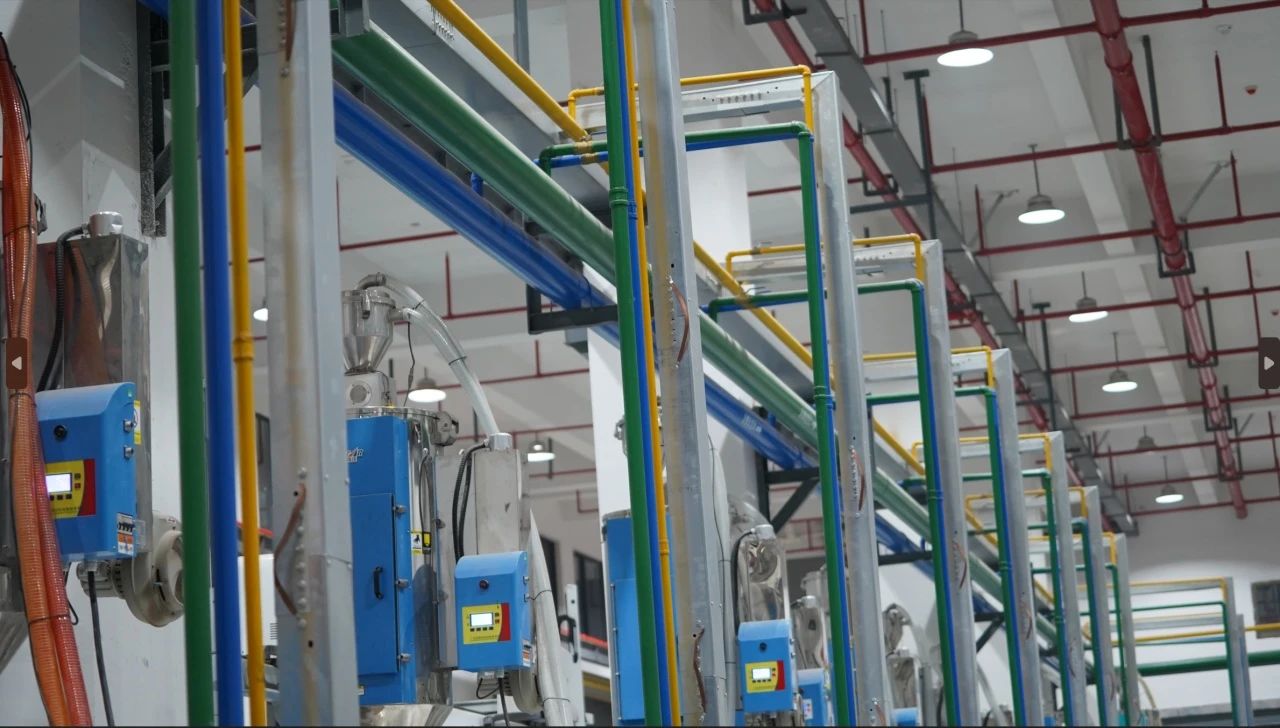 這個能讓企業(yè)“漂亮”的整廠方案,拓斯達又是如何實施的?方案主要從機電工程、裝備智能化、注塑自動化和售后四大方面入手,為金華涵燁定制了解決方案。在機電工程方面,拓斯達規(guī)劃工程師利用數(shù)字化仿真技術(shù)制定了詳盡的車間機電模塊方案,讓關(guān)鍵管路“各司其職”。