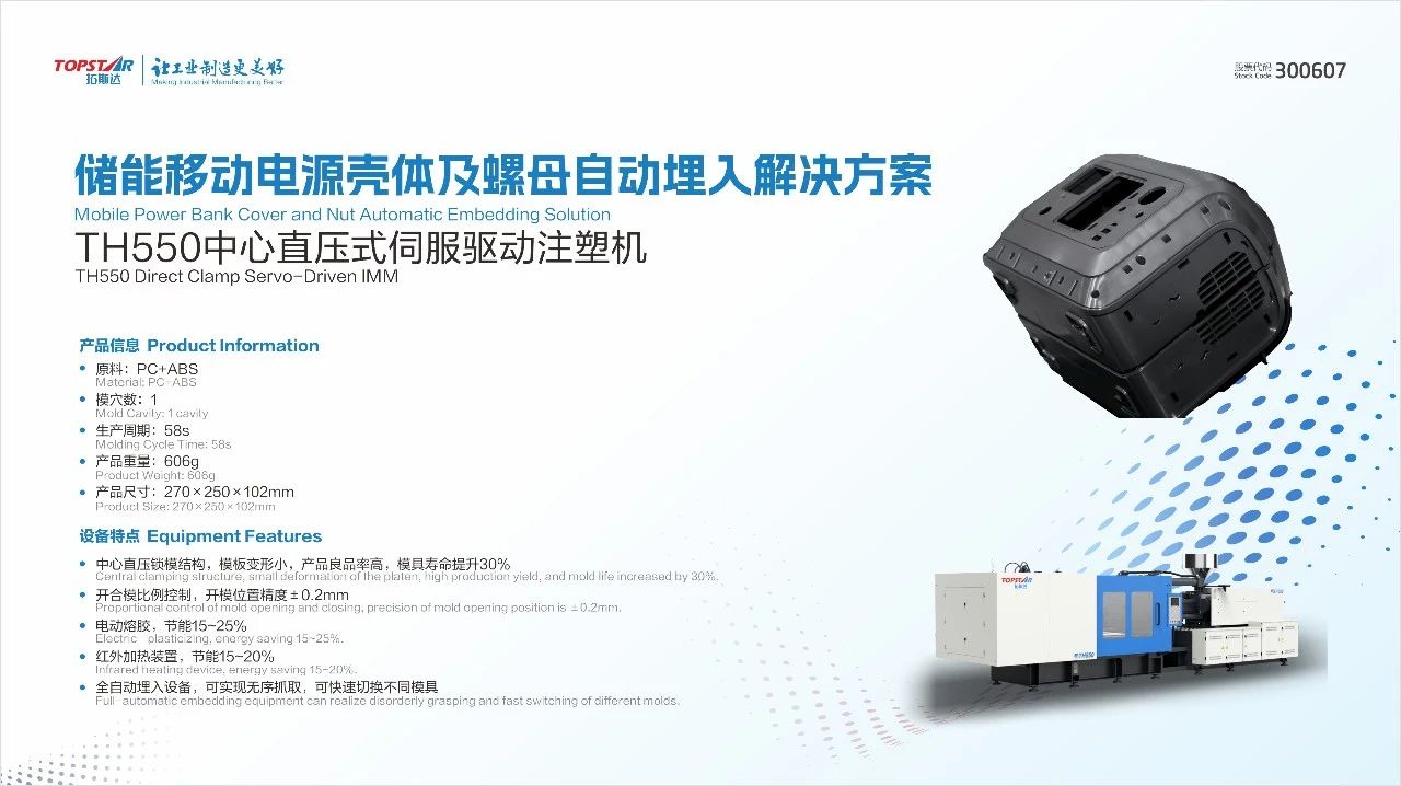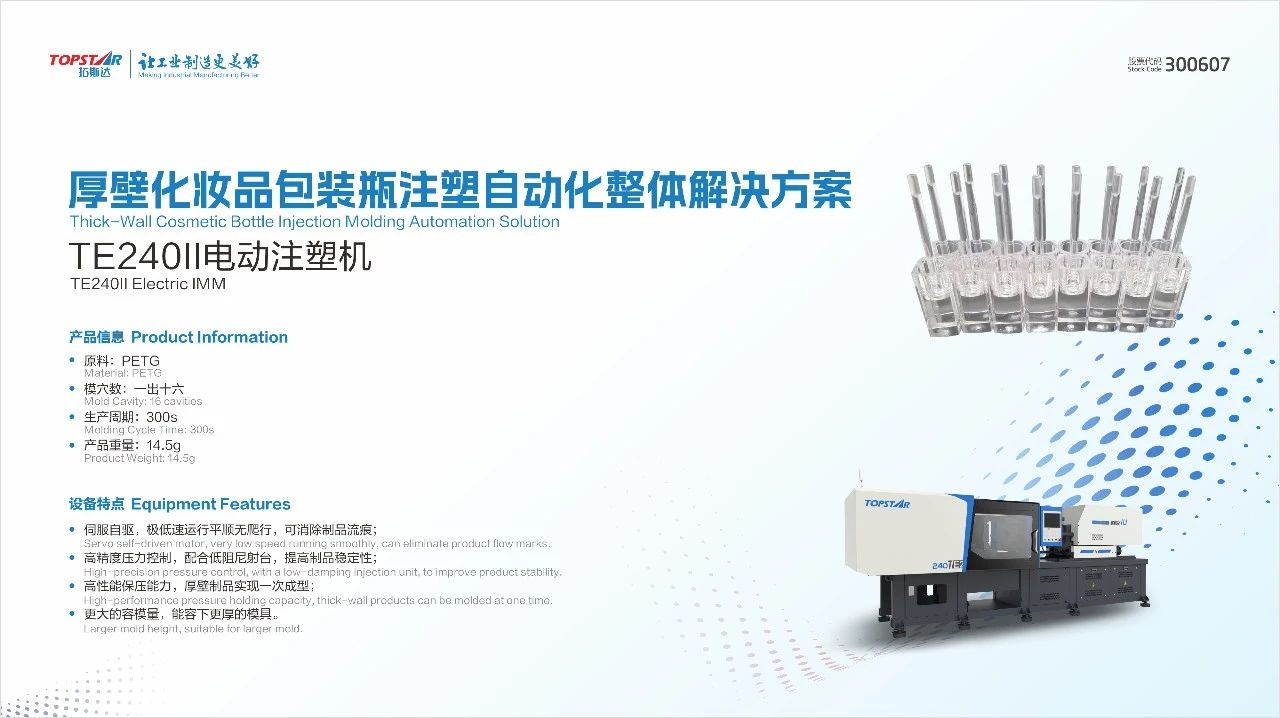 基于行業(yè)對智能化、綠色化、低碳化、數(shù)字化、精密化的升級需求,本次拓斯達(dá)三大核心智能裝備注塑機(jī)、五軸聯(lián)動數(shù)控機(jī)床、工業(yè)機(jī)器人齊齊亮相,以【MIM金屬粉末注塑行業(yè)解決方案】、【厚壁化妝品包裝行業(yè)解決方案】、【儲能移動電源殼體及螺母自動埋入解決方案】、【注塑模具五軸加工中心解決方案】為展示核心。覆蓋從原料到模具、再到智能設(shè)備及工藝應(yīng)用的整個鏈條,有效幫助客戶整合金屬行業(yè)和注塑行業(yè)的各制造環(huán)節(jié)。