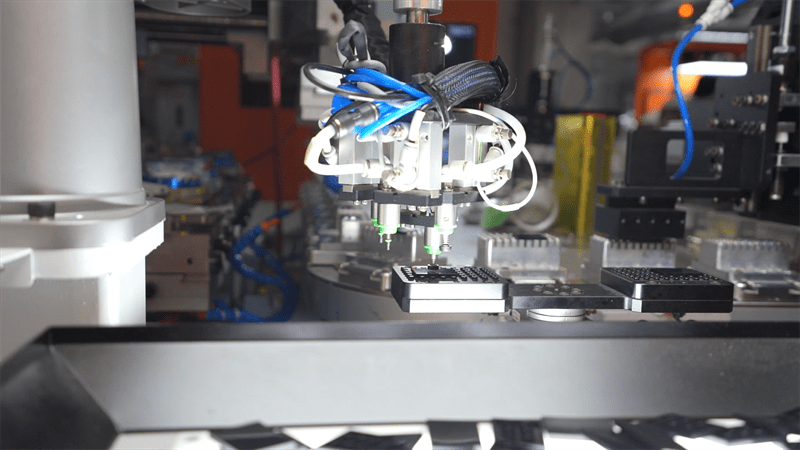 以±0.02毫米的重復(fù)定位精度抓取積木并對位放置在移印載具上,確保了移印圖案的一致性,使積木表情等更精致、更傳神。