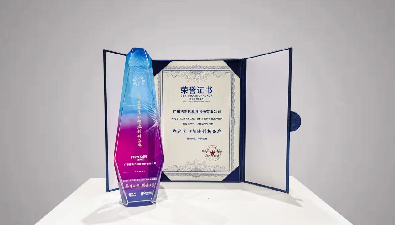 10月22日,2024(第三屆)塑料工業(yè)大會暨品牌盛典“塑業(yè)奧斯卡”評選活動(dòng)舉行頒獎(jiǎng)典禮,拓斯達(dá)榮獲【塑業(yè)匠心智造創(chuàng)新品牌】獎(jiǎng)。