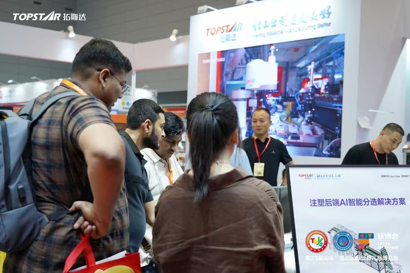 汕頭市澄海地區(qū),作為全球塑膠玩具產品的主要生產基地,占據全球33%和國內50%的市場份額。面對玩具產業(yè)從“制造”向“智造”轉型的發(fā)展需求,拓斯達在第23屆玩博會通過提供柔性化、標準化、智能化的“機器人+”解決方案,滿足當地玩具產業(yè)多樣化的生產需求,成為玩具“智造”不可或缺的黃金搭檔。