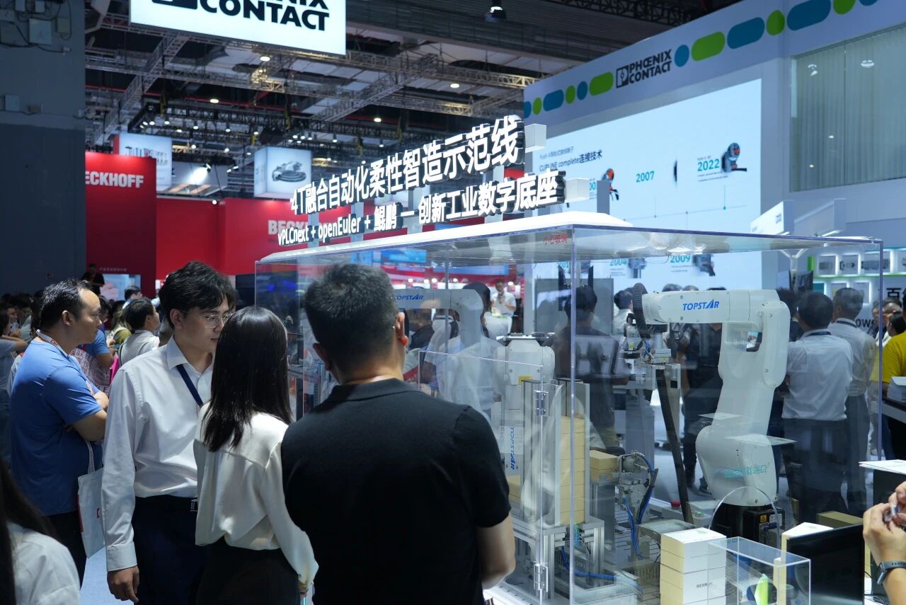 9月23日-27日,第二十五屆中國國際工業(yè)博覽會上,拓斯達(dá)聯(lián)合生態(tài)伙伴重磅展出兩大創(chuàng)新方案——【拓斯達(dá)-智微智能】智擎機(jī)器人控制解決方案與【拓斯達(dá)-菲尼克斯】4T融合自動化柔性智造示范線,為企業(yè)智能化升級提供全新路徑。